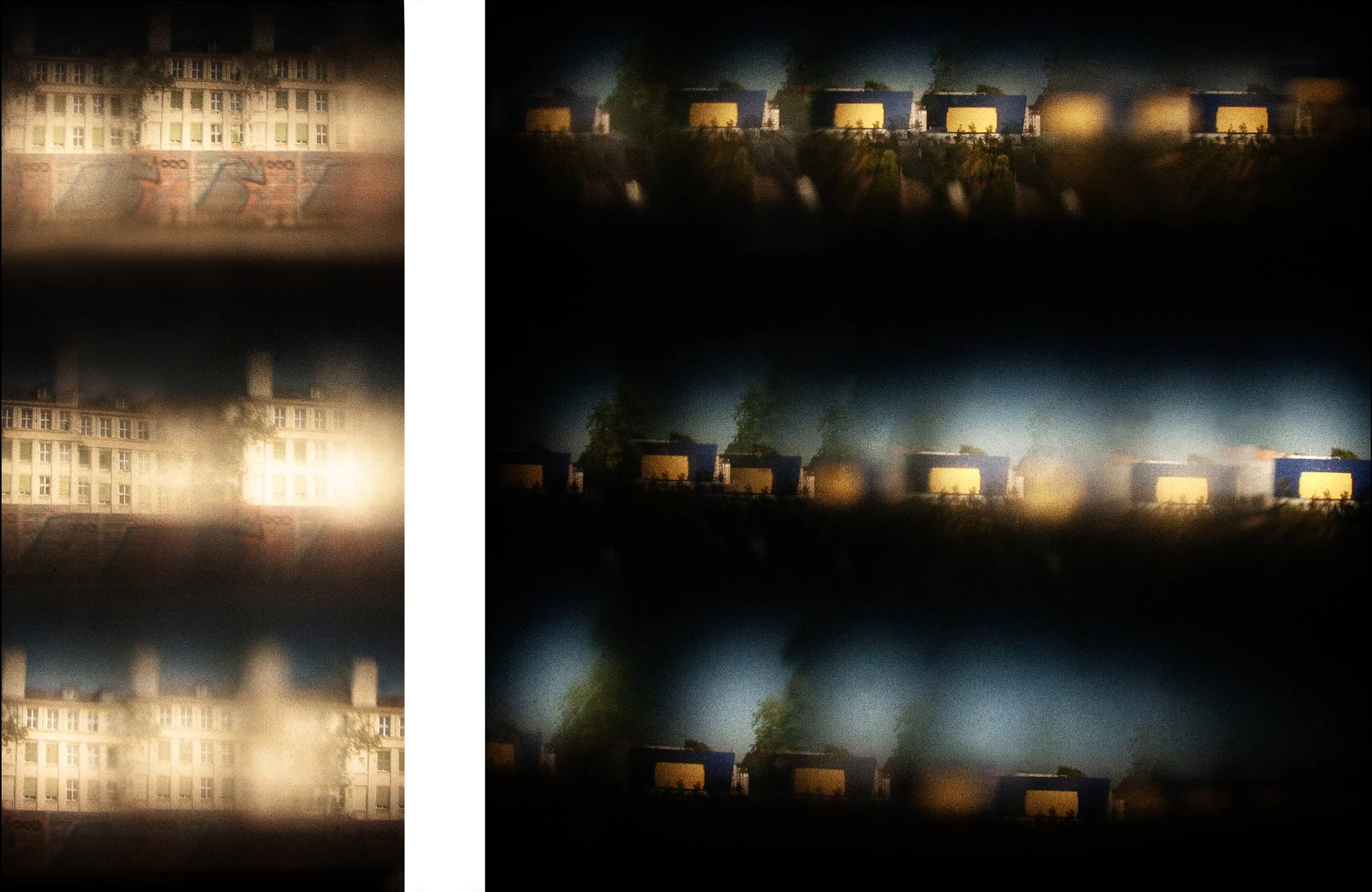 A bright morning, a dull morning, a bright afternoon, a moving train.