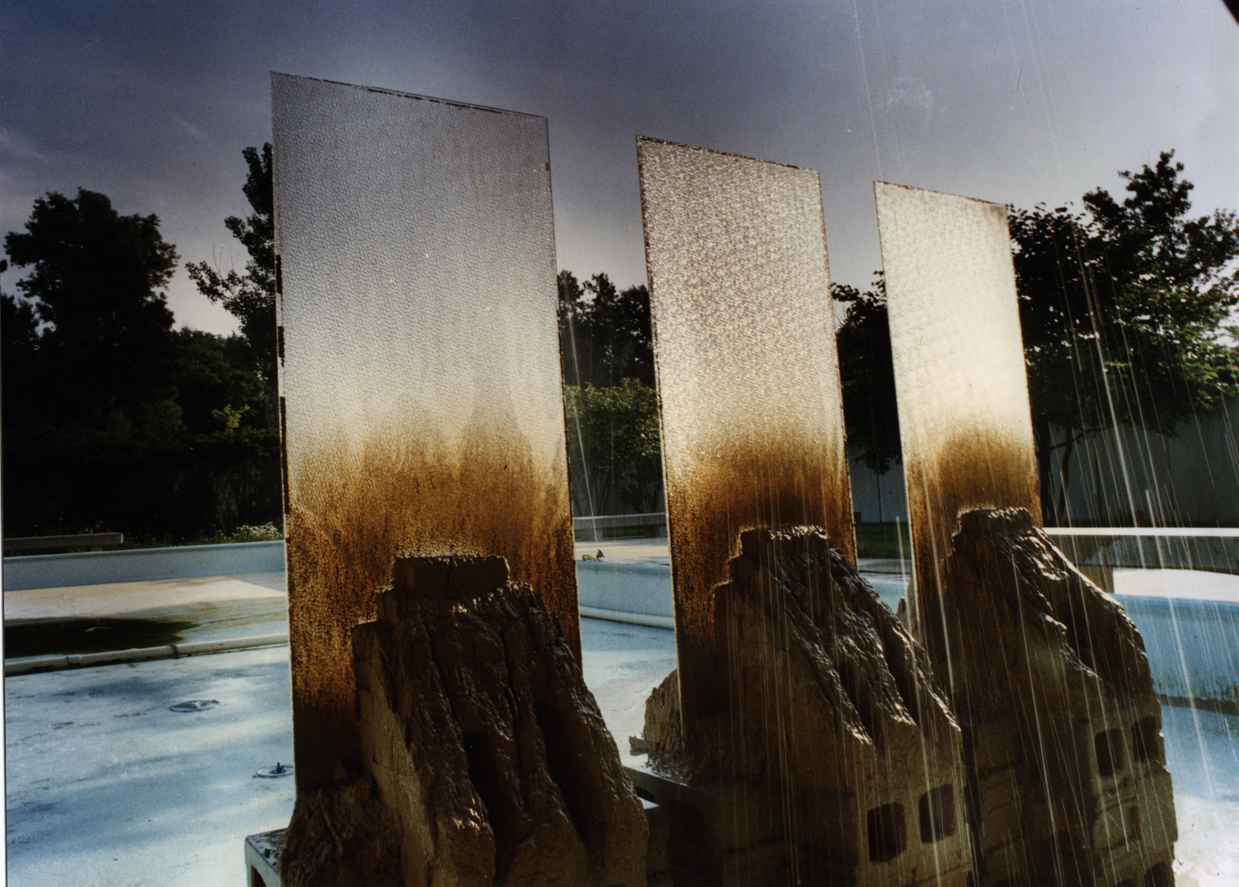 The bricks held the beautiful old sheets of glass in place while the water from the fountain casually eroded the brick. There was an inevitable conclusion to this.